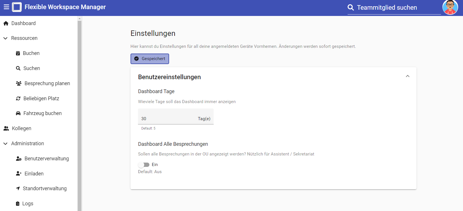 In den Einstellungen können Sie zusätzlich einstellen, wie viele Tage im Voraus Sie die Buchungen sehen möchten.